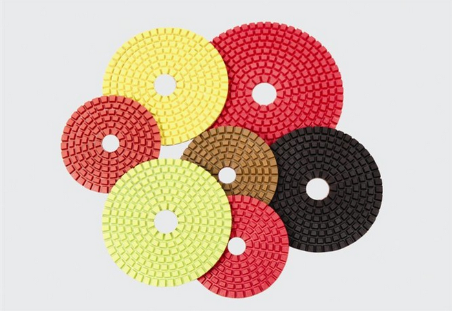 金剛石水磨片又稱金剛石軟磨片,是以金剛石為磨料,與復(fù)合材料結(jié)合制成的柔性加工工具,背面粘有尼龍搭扣布,粘扣在磨機的接頭上,用于磨削,可對石材,陶瓷,玻璃,地磚等材料進(jìn)行異型加工,適用于石材拋光,線條倒角,弧形板及異形石材加工,也可用于大理石、混凝、水泥地面、水磨石、微晶玻璃、人造石、地磚、釉面磚、玻化磚的異形加工,修復(fù)和翻新,具有磨削力強,耐用性好、軟度好、清晰度、光澤度好,是理想的石材研磨工具,整個過程分為粗磨,細(xì)磨,精磨,拋光四個階段,經(jīng)加工的石材,光澤度達(dá)90°以上。規(guī)格:3寸、4寸、5寸、6寸、7寸、8寸;   厚度:2.5mm、3.0mm、3.5mm;
