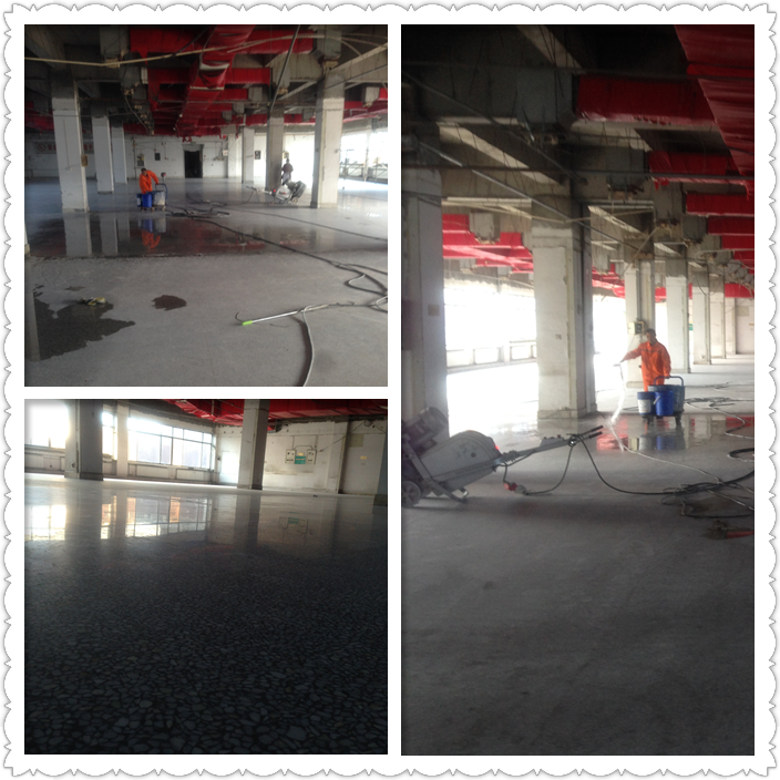 2、第二用清水清洗地面,沖洗地面表層浮塵和砂眼里的細(xì)塵。